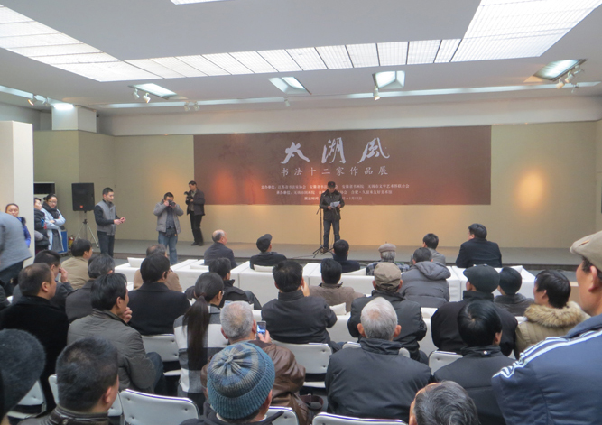 2015年1月11日由江苏省书法家协会、安徽省书法家协会、安徽省书画院、无锡市文学艺术界联合会主办,无锡市国画院、合肥市书法家协会、合肥-久留米友好美术馆承办的“太湖风——书法十二家作品展”于合肥-久留米友好美术馆举办。 以学养书、艺术修心,本次画展都是无锡书家,他们的作品传达了地域特色:清新、典雅、俊逸。这十二位书家的共同点是立足传统,筑基经典,笔法根基深厚,取法广博,但各自的切入点不同。十二家中擅行草书者,都从“二王”来,但有的节奏平和、线条圆润;有的用笔峻爽、细节精微。写草书者,或直取简约、或崇尚正大气象、或在用墨的枯润上突破,十分难得。 本次画展于本月15日结束。
