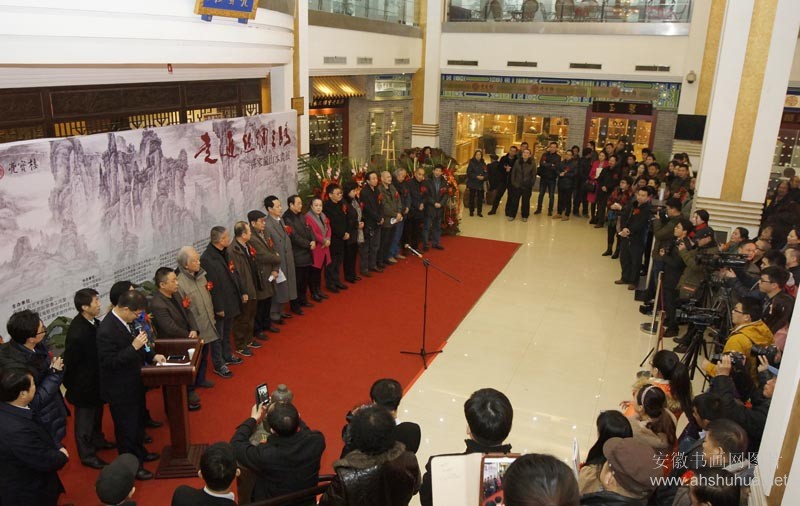 参加当天开幕式的领导和嘉宾有:全国政协委员、中国法治诗书画院院长、文化部中国书画院国画院副院长、中央国家机关美术家协会副主席、国家一级美术师汪国新,原中国美术出版总社社长、荣宝斋顾问、荣宝斋画院院长郜宗远,中外名人文化研究会研究员、画家、国家一级美术师孙兴学,书画家汪汀,中国人民艺术家协会副秘书长高歌,中央电视台资深主播王建川,何海霞先生之子、何海霞美术馆馆长、国家一级美术师、西安长安画院副院长何纪争,安徽桑乐金股份有限公司董事长金道明,西安中国画院常务副院长王犇,西安市文广新局局长严彬,陕西省美术家协会副主席宋亚平,西安美术学院国画系教授、第十二届全国美展铜奖获得者杨季,陕西省书画艺术协会主席祁建民,延安市美协主席李思明等。