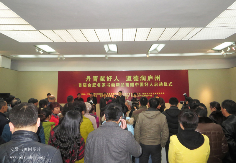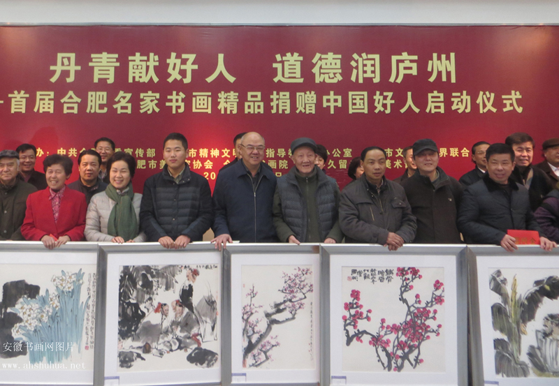 百花回报沃土,艺术奉献人民。在全国文艺界深入学习习近平总书记在文艺工作座谈会上的重要讲话精神的背景下,在合肥市文艺界“深入生活,扎根人民—文艺家下基层惠民活动”的高潮中,为充分发挥道德模范榜样作用,推动公民道德建设深入发展,褒奖群众身边的“中国好人”,引导人们见贤思齐,不断提升道德诚信的正能量。 由中共合肥市委宣传部、合肥市文明办、合肥市文联联合主办,合肥市书画院、合肥市美协、合肥·久留米友好美术馆承办的“丹青献好人 道德润庐州”——首届合肥名家书画精品捐赠中国好人启动仪式,2015年2月12日上午在合肥·久留米友好美术馆开展。 省市领导和模范人物、艺术名家齐集一堂,共同见证一场艺术奉献人民的盛景。参加本次捐赠活动的书画家有安徽省美协副主席张国琳、安徽省书画院专职画家王仁华、合肥市美协副主席张小祥等,老画家裴家同、王守志等也积极拿出自己的作品参加捐赠。筹集的50幅书画作品现场赠送给了50位合肥市的“中国好人”。 希望通过这次活动,进一步展示全社会对中国好人的学习和跟进,引领文艺界用思想精深、艺术精湛、制作精良的文艺作品奉献人民,坚持弘扬正能量,传承楷模精神,汲取榜样力量,在合肥长三角世界级城市群副中心的建设中凸显文化艺术积极奉献的独特魅力。