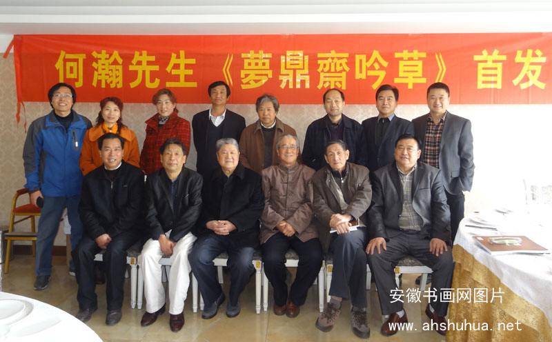 2015年3月28日上午,著名书画家、诗词楹联学家何瀚新著《梦鼎斋吟草》首发式在合肥举行。萧承震、西马、王道良、童凤莉等著名书画家及新安晚报书画院院长何显玉、中华书画名家网总编何泽厚等参加了发行式。 《梦鼎斋吟草》是何瀚先生第二本著作集。本集收录有诗词两百多首,楹联一百多幅,并选编何瀚书法和国画作品各十幅。 何瀚,原名何朝海,号梦鼎斋主。凡50余年力学不辍,遍临古代碑帖,真、行、草隶皆能挥洒自如。极喜研究古文字,对甲骨文、金文、小篆用功最勤。书法常以自作诗词楹联书之,作品参加国内外大展并获奖。2005年10月与书画同仁赴韩国原州市参加书画交流展及异地采风活动。同年出版《何瀚书画诗词楹联选》。2007年12月赴马来西亚举办个人书画展。书画作品被许多博物馆、美术馆、旅游胜地、寺庙以及国内外友人珍藏。 何瀚现系国家一级美术师,中国书画院院士,中华诗词学会、中国楹联学会会员,安徽省文史馆书画研究员,安徽省炳烛诗书画联谊会副会长兼刊物执行主编,安徽省诗词学会副会长。诗人丁芒曾赠联曰“何人秉烛攻双妙,瀚海润笔写大千”,由南京联墨大家袁裕陵书法,载于新书篇首。