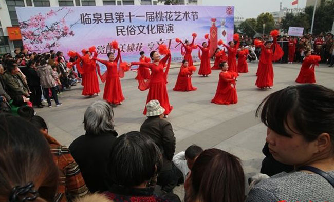 为充分挖掘临泉农业特色资源和文化旅游产业潜力,培育、推动旅游景点建设,由阜阳市旅游局、临泉县人民政府支持,县文广新旅局、滑集镇政府指导,丰联集团安徽文王酒业有限公司主办,多家企业联合承办的“临泉县第十一届桃花艺术节”3月30日隆重举行。 本届桃花节以临泉城区和县园艺场、杨桥镇桃花岛三地采取相联互动形式举办,为期一周。以“看桃花、游乡村、赏民俗、享生活”为主题,以桃为媒、延伸“农”意,集中展示县园艺场和杨桥桃花岛秀丽风光及肘阁、抬阁和杂技等国家级非物质文化遗产风采,挖掘和整合“桃文化”,融文化于旅游,对提升我县知名度有很大意义。期间将举办“非遗”民俗文化展演、摄影创作大赛、“爱在桃花节”微电影拍摄、“直通桃花岛、畅游桃花源”、“桃花仙子”评选等活动。