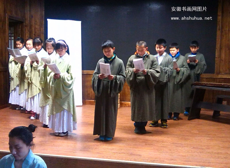 孔子尝言“不学诗,无以言;不学礼,无以立。2014年4月6-8日,由秋浦书院、安徽农业大学茶文化研究所等单位举办的“第二届春服既成•弦歌诗茶会”在石台举行。 本次活动特邀国内知名茶人、诗人、古琴演奏家、传统文化导师、书画家40余位嘉宾,全国人大代表、天方集团董事长郑孝和、中国茶文化研究所常务副所长丁以寿、安徽书画网副主编康振民等参加了此次活动。 活动内容丰富,主要有清溪唱诗、杏花村诗会、诗话论坛、书院雅事等。活动现场通过沐浴、着(春)服、礼圣、敬香、唱诗(经)、抚(古)琴、执茶等一系列的雅艺展示,展示了中国古代优秀传统文化的魅力。活动期间,著名书法家康振民挥起如椽大笔,书写了一批关于诗、茶文化的书法作品,赢得了与会者的一致好评。