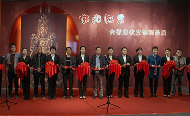 4月17日上午,由安徽博物院主办,九华山佛教协会化城寺、九华山历史文物馆、浙江省博物馆、阜阳市博物馆、寿县博物馆、潜山县博物馆、舒城县文管所、青阳县博物馆协办的《佛光恒常——安徽佛教文物精品展》在我院新馆二楼隆重开幕。安徽省文物局副局长汪顶胜,安徽博物院院长朱良剑、副院长李治益,协办文博单位负责人代表以及省内外文化界、艺术界等嘉宾参加了开幕式。