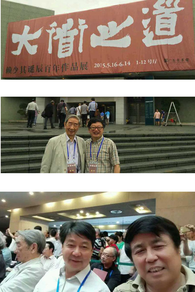 5月16至6月14日,由中国美术家协会、广东省美术家协会、安徽省美术家协会、广东美术馆主办,合肥市赖少其艺术馆、广州艺术博物院协办的“大道之道——赖少其诞辰百年作品展”在广东美术馆开幕。开幕式当天举行了赖少其作品学术研讨会。安徽省原美协主席鲍加、省美协副主席王佛生、张国琳、师晶等参加了开幕式。 本次展览以倒叙的方式展开,从赖少琪80岁后用生命绽放的“大道之象——八十后作品”色彩之旅开始,通过“意写天地——丙寅变法作品”、“我法自然——黄山时期作品”、“出入古今——师法传统作品”、“天涯遊踪——写生作品”、“木石铿锵——版画作品”、“碑骨帖韵——书法作品”等7个部分回顾与呈现其在艺术之路上所走过的一石一阶、所累积的一砖一瓦。 赖少其是广东人,他的艺术启蒙于广东,大成于广东,又能代表着20世纪的广东,不论是他艺术的工作方法、精神高度、达到的成就,无一不是广东的名片。本次还展示相关的文献资料,包括赖少其与鲁迅先生以及其他文艺界知名学者的珍贵交流信札、赖少其自述艺术心声的手稿和他历次展览的出版物,还有赖少其生前用过的篆刻工具及书房物品等实物,从多层面完整展示赖少其在中国画、版画、书法、印刻、诗词等艺术领域的深厚造诣及其充满人格魅力的传奇人生。展览得到合肥市赖少其艺术馆、广州艺术博物院以及赖少其先生家属的大力支持。