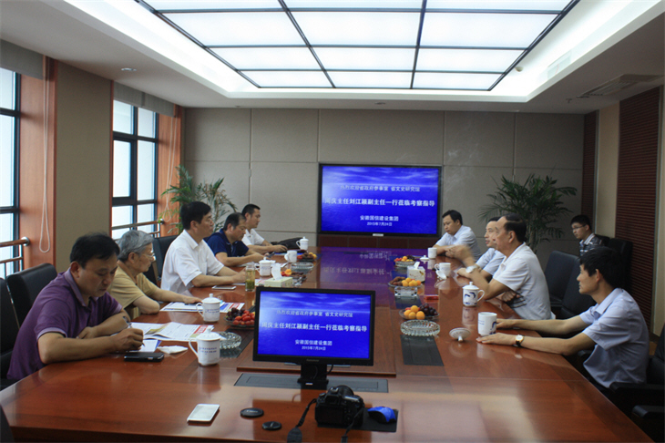 2015年7月24日下午,室党组书记、主任周庆,室党组成员、副主任、常务副馆长刘江颍率机关有关人员赴安徽国信建设集团考察,并参观位于该集团内的“懒悟·贺泽海艺术馆”。 座谈中,周庆主任、刘江颍副主任在听取该公司何勋法董事长的情况介绍后,简要介绍了我室情况和此次应邀前来的目的。周庆主任指出,国信建设集团用民间资金建设艺术馆,是一件功在当代、利在千秋的好事,与安徽省政府不谋而合,当前,我们省政府参事室和省文史研究馆正在积极开展征集已故馆员的书画作品,而国信建设集团先行一步,把三位已故馆员的大量作品收集起来,保管展出,既传承了民族文化、弘扬了安徽文化艺术,也增加了企业的文化凝聚力、向心力。周庆主任强调,中化文化传承需要政府与民间共同努力,相互促进才能做好,双方要扬长避短,取长补短,才能相得益彰,今后,希望双方要加强联系,互通有无,共同推动中化优秀文化的传承和发展。 刘江颍副主任指出,此次为挑选赴台展出作品来安徽国信建设集团参观,潘立纲馆员从中做了很好的协调工作,国信建设集团和“懒悟·贺泽海艺术馆”给予倾情相助,对此表示感谢!此次赴台展出安徽文史研究馆馆员作品,既有加强统战工作等政治上的考虑,也有展示安徽文史馆艺术水平等方面的原因。刘江颍副主任强调,这次赴台作品展览规格高、规模大、影响广,出席人员多,牵涉力量众,不仅要把画册印刷精美,还要把画子安全完整地运送回来,做好相关交接手续,完善预案,注重细节,明确分工,确保万无一失、顺利圆满。 在友好的交流氛围中,潘立纲馆员言语不多,却引用唐代诗圣杜甫“老去悲秋强自宽、兴来今日尽君欢”的诗句,生动陈述自己老年勤奋自勉、真诚待友的积极乐观之情;同时以晚唐著名诗人李商隐“天意怜幽草,人间重晚晴”的诗句深切表达感恩时代、珍惜时光、量力而行的拳拳爱心。 在何勋法董事长和“懒悟·贺泽海艺术馆”徐大海馆长等人的陪同下,周庆主任、刘江颍副主任饶有兴致地参观了“懒悟·贺泽海艺术馆”,并挑选了赴台展出作品。