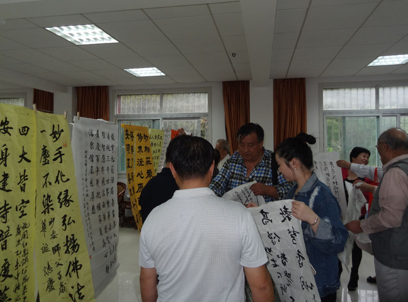 众人把祝寿的书画作品悬挂起来