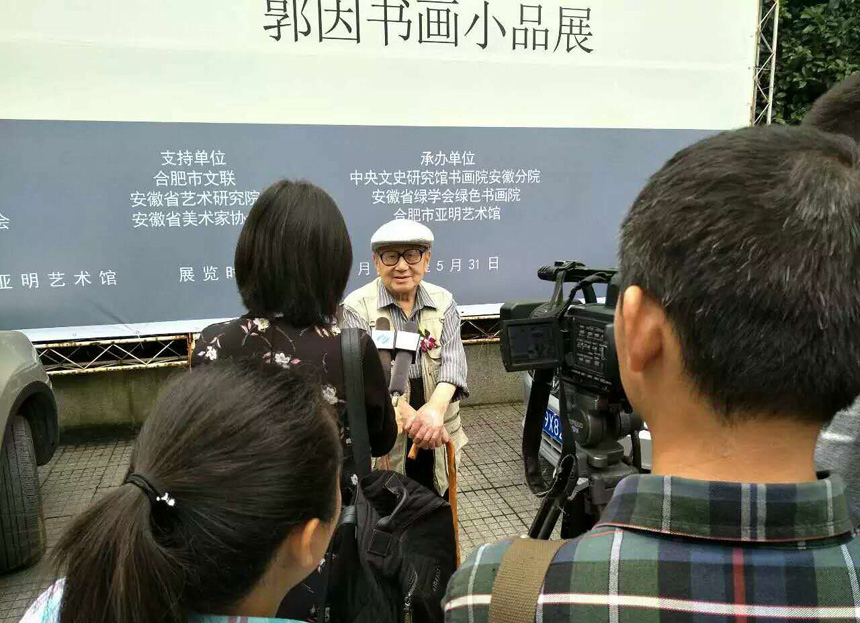 5月26日,由安徽省人民政府参事室、安徽省文史研究院、中国民主同盟安徽省委员会联合主办,中央文史研究馆书画院安徽分院、安徽省绿学会绿色书画院、合肥市亚明艺术馆承办的“满目青山夕照明”郭因个展在亚明艺术馆隆重举行。 著名美学家郭因先生是一位学富五车、满腹经纶的大学者。早在上世纪八十年代,他的《艺廊思絮》、《中国绘画美学史稿》等著作出版,以前瞻的思维、新锐的视角、清新的语言,将在极左思潮猖獗下萌生的新思想的闪烁火花点燃,给一大批彷徨的读者带来了温暖的阳光和清新的空气! 郭因先生是一位饱经风霜的知识分子,早年参加革命,加入民盟,还是一位老游击队员。一辈子忧国忧民、笔耕不辍,已出版发表了数百万字的著作,为新中国社会主义美学大厦的建设作出了甚具个人特色的贡献。鲜为人知的是,他还是一位学者型的个性鲜明的书画家,近年,不断有书画作品问世,几乎达到了“不鸣则已、一鸣惊人”令人惊叹的地步。 郭因先生作画经常是片纸,秃笔,信手勾勒渲染。作简笔山水,寥寥数笔,韵味无穷。郭因先生对中国绘画史论烂熟于心,谈及历代画家的风格如数家珍,有深厚素养的博学之士,落笔自然不同凡响。 郭老又是典型的“学者书家”,字体俊朗秀逸,已达到“炉火纯青”的境界。 我最欣赏的是郭因先生每幅画中的题辞,可以说,这在中国画坛可谓独领风骚。曾有一山水画,秃松一株、危岩一角,松下岩边,一座荒庙,他题道:“画个松下岩边破庙给心住”,又画有幽谷春兰一幅,题云:“兰生幽谷吐幽香,谢绝蜜蜂为吾忙,自落自开自欣赏,无心挤入娱乐场。”如此等等,不一而足,由此不难窥知其高尚的胸襟及其忧世的深意。 郭因先生还擅长诗词曲赋,他的《红楼人物咏》脍炙人口,广为流传,可以说,他在文学艺术方面的修养是全面而又厚重的。他显然已达到“腹有诗书气自华”的佳境。这样一位全面继承与弘扬祖国优秀民族文化传统的可敬老人,一位坚守“人民旗帜”的文艺老战士,他的书画作品,都是抒写在宣纸上的抒情诗,令人动情。 总之,郭因先生书画作品的艺术成就是别具一格的,他真正做到了从平凡的题材中提炼出有积极意义的主题,加强了作品的思想容量,以简洁的形象,唤起读者丰富的联想,达到了言简意赅、言有尽而意无穷的艺术境界! 郭因先生书画创作成就彰显出的个案,又一次说明了古往今来画家行万里路,读万卷书,加强自身全面文化修养的极端重要性,这也恰是当今许多画家较为欠缺的。要想攀登艺术高峰,必须加强自身文化素养的提升和积累,这才能永葆艺术之树常青,创作出无愧于时代和人民的佳作,这就是千万个老一辈的“郭因现象” 对我们最有现实意义的启迪和激励。(文/出自于安徽省美协主席 章颷) 展览前一天,主办方还在合肥市稻香楼举行了“《郭因文存》出版座谈会”。本次展览得到了合肥市文联、安徽省艺术研究院、安徽省美术家协会等单位大力支持。
