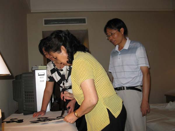 天津著名书法家吕恩彤(左)为本网题词