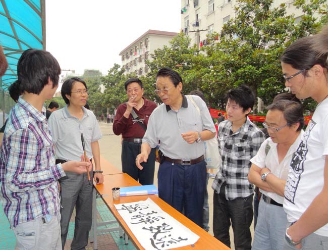 本网组织著名书法家李训华(左四)等赴安徽交通职业技术学院指导校园书画大赛