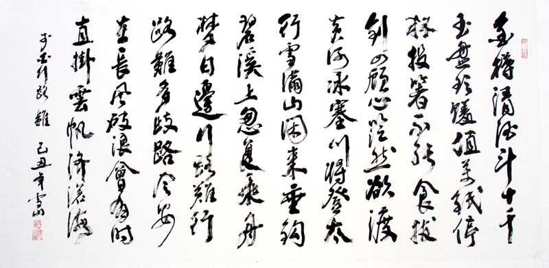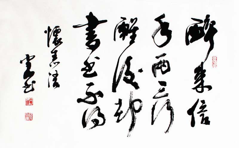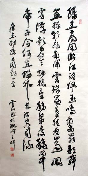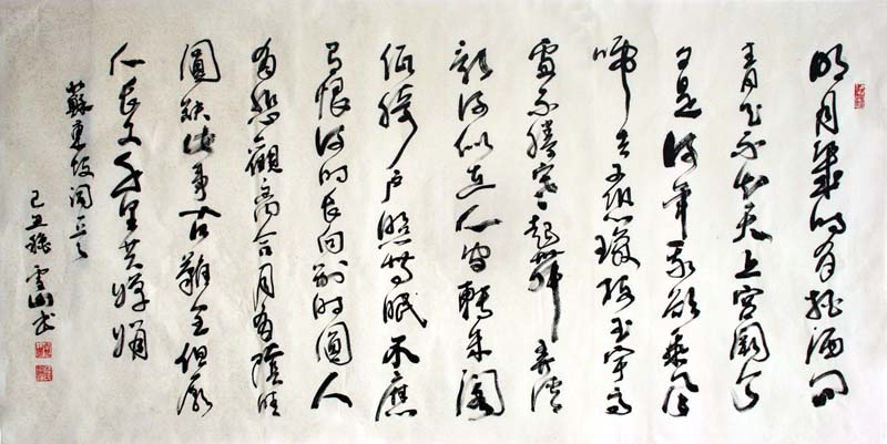 雪山的书法初学颜柳,后攻二王及各名家,逐渐形成严谨不失活泼、苍劲厚重的个人风格。他在研习书法的同时,爱好艺术品收藏,对奇石情有独钟!为方便石友、书友交流,他在裕丰花市开设“泽岫轩”奇石馆,二楼则专辟为个人工作室。尤为可贵的是,雪山在收藏石头、与石为伴的过程中,把石的坚硬、稳重、奇险等品质参悟到书法之中,使其书艺大进。