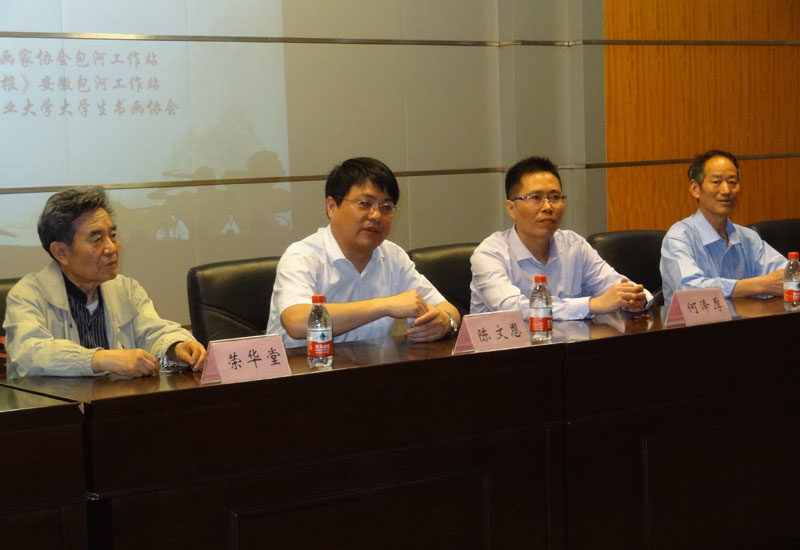 2015年5月10日晚,在中国书协安徽省考级中心包河工作站支持下,校团委、校大学生书画俱乐部组织的“大家讲堂--书法美之赏析”在我校翡翠湖校区图书馆小报告厅举行。本次讲座由知名史论美评家主讲,校团委书记陈文恩参加活动并讲话。受邀前来指导的还有著名书法家荣华堂、中国书协安徽省考级中心包河工作站负责人姜家臣等。 何泽厚老师从什么是书法,书法发展简史,书法的欣赏标准等方面对书法美的欣赏进行了详尽的讲解,并以著名书法家李训华老先生的书法进行赏析,提出了自己独到的见解与思考。何泽厚引经据典,分析到位,现场的同学们仔细聆听,纷纷表示,何泽厚老师的讲解专业而生动,详细而精妙,让人受益匪浅。本次讲座是何泽厚老师弘扬传统书画艺术高校巡回讲的第五站。 其后,嘉宾们分别对同学们带来的书法作品进行了仔细点评,指导同学们注意章法、结体、笔法、墨法在书写过程中的具体运用。最后,荣华堂老师进行现场书法创作演示,并为我校大学生书画俱乐部题写“以书会友”,以习近平总书记寄语青年“勤学、修德、明辨、笃实”八字真经相赠,祝贺学校建校70周年。(汪朝杰)