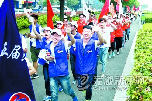 5月23日,2015芜湖市大学生嘉年华在"奔跑吧,青春"的户外活动中拉开帷幕,第五届江南片大学生电影节也于当日起航,共同架起高校与政府、高校之间艺术交流的桥梁。 当日,芜湖10所高校的学生代表从弋江区不同区域依次出发,感受着新城区的巨大变化,一路奔跑来到大学生嘉年华暨大学生电影节开幕式主会场。充满活力的脚步,展示着芜湖大学生积极向上的风貌,主会场里大学生原创微电影、电影歌曲串烧,脱口秀等轮番上演,洋溢着艺术、文化、青春的风采。2015芜湖市大学生嘉年华的主题为"我们的嘉年华,我们的电影节",主办方在举行大学生志愿服务、趣味运动会、创新创业讲座等活动的同时,将重点突出电影节的艺术特色,邀请知名电影人举行电影论坛、优秀电影巡映、原创微电影征集、COSPLAY表演等活动,为大学生锻炼能力、展示才华、交流提升搭建舞台。 自2010年起,"人文荟萃耀弋江"芜湖市大学生嘉年华活动已经成功举行了5届。每届嘉年华都历时6个多月,吸引近万名大学生踊跃参与,主题活动和高校子活动精彩纷呈,成为芜湖一大文化活动品牌。安徽师范大学江南片大学生电影节已经成功举办了4届。今年,大学生嘉年华牵手江南片大学生电影节,将通过文化与艺术的碰撞,进一步融合创新文化、传统文化、校园文化、企业文化,推动政府与高校在互动中深度合作,实现高校人才优势与弋江文化新区的完美结合。(记者 王磊 汪潜)