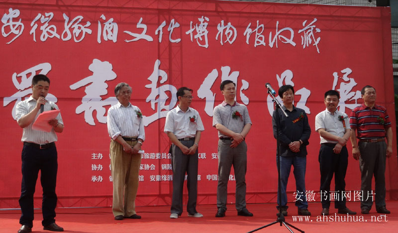 翰墨飘香,丹青溢彩。在这迷人的初夏时节,由铜陵市文化和旅游委员会、铜陵市文联、安徽缘酒集团联合主办的“安徽缘酒文化博物馆收藏唐罡书画作品展”,6月9日上午在铜陵市美术馆隆重开幕。本次书画展共展出唐老山水画、花鸟画、仕女图以及各类书法作品百余幅。 铜陵市委宣传部副部长张文林,铜陵市书画院院长、著名书画家江冰,市书协主席、著名书法家姚时进,安庆市政协书画院副院长、原市书协主席、著名书法家余龙生,安徽缘酒集团董事长、著名诗人黄晔,安徽缘酒文化博物馆艺术顾问、著名书画家唐罡等出席活动并剪彩;安徽书画网总编何泽厚、著名环保艺术家陆利兵及几百名缘酒经销商受邀参加了开幕式。开幕式由缘酒集团副总经理王世保主持,黄晔、余龙生、唐罡、张文林先后致辞。 黄晔董事长首先向在场的各位领导、嘉宾和经销商客户及书画爱好者表示热烈的欢迎和衷心的谢意!他高度评价——唐老的作品就像一壶老洒,散发着浓烈的艺术芬芳。需要我们大家去细细品读、耐心赏悟。通过对缘酒文化博物馆收藏唐老书画作品的集中展示,他期望有着更多的人去学习和了解书画艺术,了解浓郁的酒缘文化,关心和理解像唐老这样德艺双馨的前辈艺术家,共同推动铜陵•安庆两地的文化艺术交流,继承和弘扬中华民族优秀传统文化。 据黄总介绍,安徽缘酒文化博物馆坐落于风景绮丽的陈瑶湖畔,占地30亩,由安徽缘酒集团出资6000万建设而成,是日前安庆第—家民营博物馆。收藏有藏品3000余件,涵盖名人名家书画作品、历代珍贵的酒器酒具、独具文化底蕴的凌家滩文化、充满地域特色的民俗藏品和各种印章等。自2014年9月29日开馆以来,游客、参观者络绎不绝,至今已达万人之多,现正在积极申报国家三级博物馆,国家AAAA级旅游风景区。 本次展览由铜陵市美协、铜陵市书画院协办,铜陵市美术馆、安徽缘酒文化博物馆、中国缘文化网承办,此后还将在青阳、枞阳、安庆和合肥等地举行巡展。