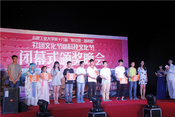 6月12日晚,由合工大校团委主办、校学生联合会承办的第16届社团文化节与科技文化节在翡翠湖校区东风广场落下帷幕。校团委相关负责老师及安徽大学、安徽医科大学、安徽农业大学等6所高校的社团联合会代表出席闭幕式晚会,近千名学生参加了闭幕颁奖晚会。 晚会上,街舞社、民族曲艺协会、致和华韵社、宅基地ACG协会、落英缤纷配音社以及滑动青春俱乐部等学生社团通过独具特色的节目,充分展示了我校学子的青春风采,将现场气氛一次次推向高潮。晚会高潮迭起,精彩缤纷,展示了各社团的风采与魅力。 晚会期间,校团委副书记郑召丽及相关老师为本学年科技文化节“优秀组织奖”、“最佳展示奖”、“优秀宣传奖”及“优秀科技之星”、“最具活力社团”和“社团十佳干部”等获奖学生集体和个人颁发了荣誉证书。 本届科技文化节、社团文化节,恰逢学校建校七十周年的契机,各社团、科技与创新协会围绕群众体育锻炼、科技创新、志愿帮扶广泛开展班级篮球赛、船模大赛等80余项活动,进一步丰富了校园生活、提高了学生的创新能力,全面展示了我校大学生朝气蓬勃的青春风采,受到同学的广泛欢迎。