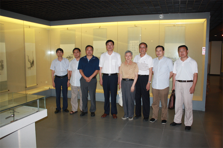 2015年7月24日下午,室党组书记、主任周庆,室党组成员、副主任、常务副馆长刘江颍率机关有关人员赴安徽国信建设集团考察,并参观位于该集团内的“懒悟·贺泽海艺术馆”。 座谈中,周庆主任、刘江颍副主任在听取该公司何勋法董事长的情况介绍后,简要介绍了我室情况和此次应邀前来的目的。周庆主任指出,国信建设集团用民间资金建设艺术馆,是一件功在当代、利在千秋的好事,与安徽省政府不谋而合,当前,我们省政府参事室和省文史研究馆正在积极开展征集已故馆员的书画作品,而国信建设集团先行一步,把三位已故馆员的大量作品收集起来,保管展出,既传承了民族文化、弘扬了安徽文化艺术,也增加了企业的文化凝聚力、向心力。周庆主任强调,中化文化传承需要政府与民间共同努力,相互促进才能做好,双方要扬长避短,取长补短,才能相得益彰,今后,希望双方要加强联系,互通有无,共同推动中化优秀文化的传承和发展。 刘江颍副主任指出,此次为挑选赴台展出作品来安徽国信建设集团参观,潘立纲馆员从中做了很好的协调工作,国信建设集团和“懒悟·贺泽海艺术馆”给予倾情相助,对此表示感谢!此次赴台展出安徽文史研究馆馆员作品,既有加强统战工作等政治上的考虑,也有展示安徽文史馆艺术水平等方面的原因。刘江颍副主任强调,这次赴台作品展览规格高、规模大、影响广,出席人员多,牵涉力量众,不仅要把画册印刷精美,还要把画子安全完整地运送回来,做好相关交接手续,完善预案,注重细节,明确分工,确保万无一失、顺利圆满。 在友好的交流氛围中,潘立纲馆员言语不多,却引用唐代诗圣杜甫“老去悲秋强自宽、兴来今日尽君欢”的诗句,生动陈述自己老年勤奋自勉、真诚待友的积极乐观之情;同时以晚唐著名诗人李商隐“天意怜幽草,人间重晚晴”的诗句深切表达感恩时代、珍惜时光、量力而行的拳拳爱心。 在何勋法董事长和“懒悟·贺泽海艺术馆”徐大海馆长等人的陪同下,周庆主任、刘江颍副主任饶有兴致地参观了“懒悟·贺泽海艺术馆”,并挑选了赴台展出作品。