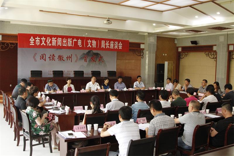 8月5日上午9点,全市文化新闻出版广电(文物)局长座谈会在安徽中国徽州文化博物馆召开,市文化委党组成员,各区县文广新局、文物局局长,各直属单位,各科室负责人参加会议。
