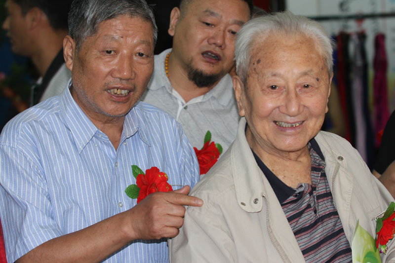 展览现场,陈树良会长和著名美术史论家郭因参观展览