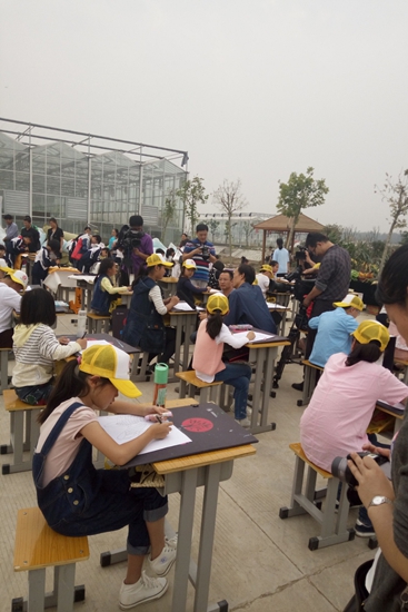 为深入贯彻落实习近平总书记文艺工作座谈会讲话精神,弘扬我国优秀传统文化,促进艺术交流,构建和谐社会。近日,县文广新局局长王俊田、书画院院长席蜜、书画协会的书画家组成书画小分队到双浮镇开展“种文化”活动。阜阳市电视台记者一行随同前往。活动在双浮镇农业生态园举办。活动现场书画小分队分成两组,一组教授来自双浮镇中小学的学生们绘画生态园的农作物;一组教授书法基础知识。在老师的讲解指点下学生们画的认真又投入,一幅幅书画作品笔墨精妙,栩栩如生。 此次书画小分队“种文化”活动深入农村深入群众,大力营造欢乐祥和的群众文化氛围,把传统文化和人民群众的生活紧密的结合起来,展现出太和县书画艺术的魅力。(文化馆 张新影 张华萍)