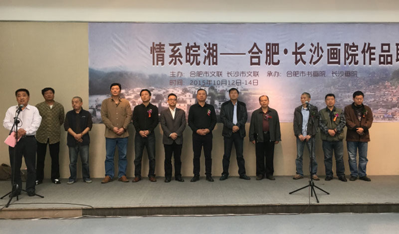 由合肥市文联、长沙市文联主办,合肥市书画院、长沙市书画院承办的“情系皖湘——合肥长沙画院作品联展”,于2015年10月12日上午在合肥-久留米友好美术馆开幕。欢迎广大爱好者前来观展。 此次展览是安徽合肥市书画院和湖南长沙画院两地国办书画院联合举办两地书画名家精品交流展,已于9月在湖南长沙成功展出,此次移师合肥展览。合肥与长沙地缘相近,人缘相亲,文化相融,随着合肥、长沙文化交流的不断拓展,合肥与长沙之间的文化活动会更加频繁。 展览展出合肥、长沙两地16位画家的79张中国画作品。本次展览于10月14日结束。