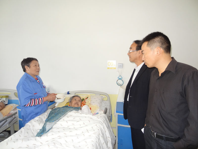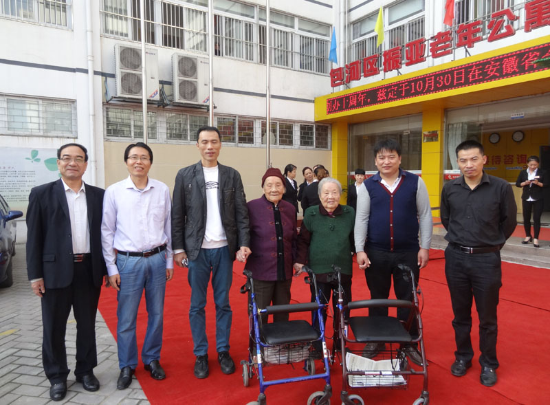 10月21号上午,圣神集团董事长莫善峰、执行总裁马登帅、副总何泽厚、王其马、王金义等一行六人走进包河区振亚老年公寓,为老人们带来两千多元的水果、面包、米、油以及亲切的问候。 为表示对莫总一行的欢迎和感谢,振亚养老公寓孙建芳院长特别安排了一场有意义的活动--振亚养老创办10周年的重阳节升旗仪式。参加升旗仪式的除了嘉宾、管理人员、社会爱心人士外,还有两位百岁老人和一位九十多岁的抗战老兵。场面十分肃穆,让人心情激动。 随后孙院长陪同大家参观了养老院,并详细介绍了每个楼层的功能设置。莫总在每个楼层都走进房间和老人们亲切交流,大家有说有笑,全都乐呵呵的,有说不出的喜悦。