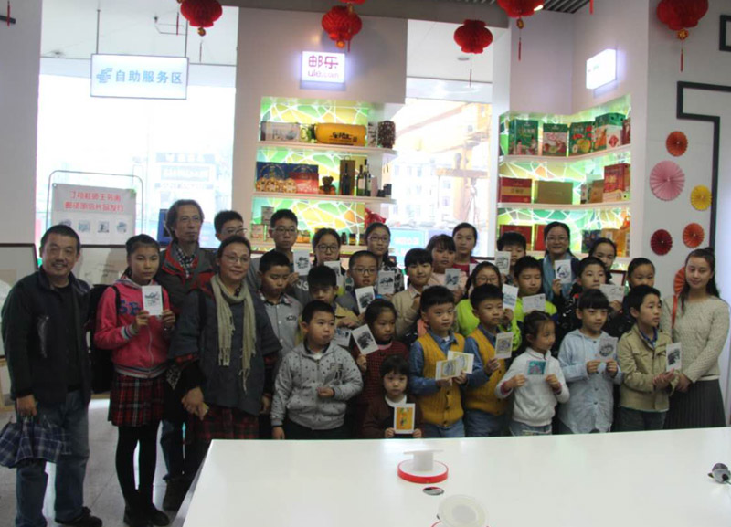 10月23日上午在市邮政大厅,丁祖桂师生水墨写生小品画受邀参加“美好安徽——中国名家书画作品邮资明信片”发行活动。主办方还举办了“丁祖桂师生水墨画邮资明信片展”,出席展览的嘉宾有:安徽省书画研究会山水画会会长、著名画家胡礼惠老师,著名画家申皖如老师,合肥市书画院副院长著名画家郑天伦老师等。三位艺术家冒雨参加活动并给孩子们点评作品、签名留念!