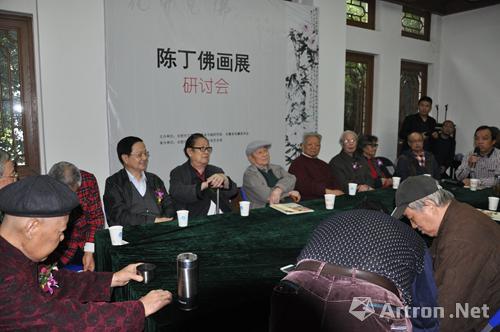 开幕式后由安徽省美术理论委员会副会长王永敬先生主持对陈丁佛绘画艺术进行了研讨,会上美术史论家郭因、郭公达、陶天月、周觉钧、刘继潮、王家琰、胡正言等对陈丁佛人品和书画艺术给予了很高的评价,陈丁佛先生作品设色艳而不俗、用笔恣肆、以书入画传承和发展了孔小瑜先生所授海派小写意花鸟画在安徽的文脉。