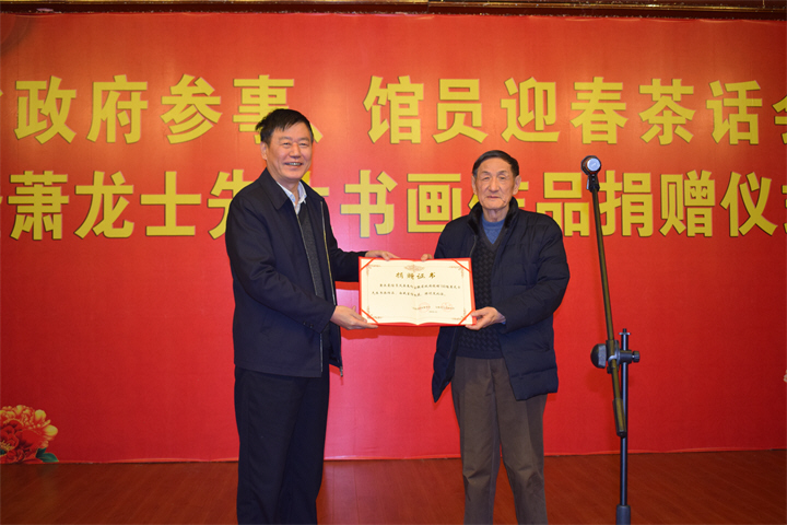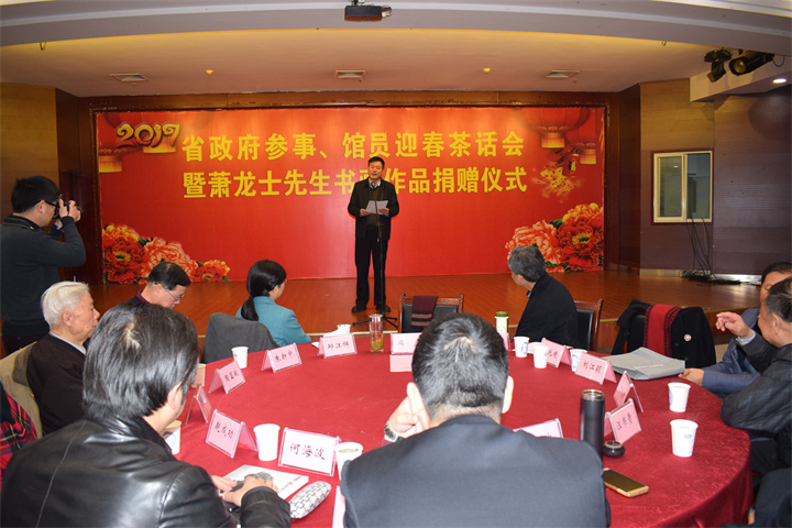 省政府参事馆员迎春茶话会暨萧龙士先生书画作品捐赠仪式在肥举办