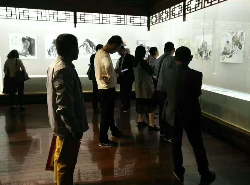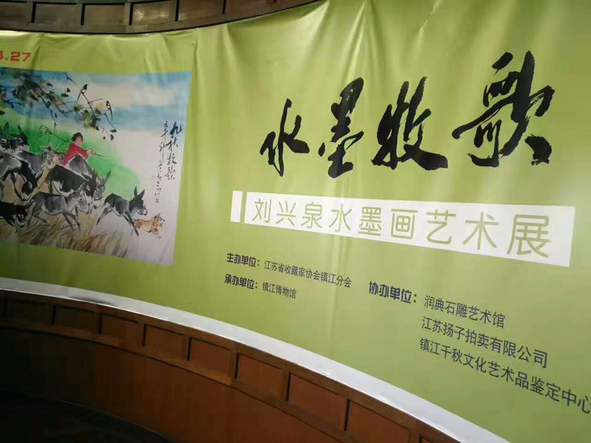 4月18日,由省收藏家协会镇江分会主办的“水墨牧歌——刘兴泉水墨画艺术展”在镇江博物馆隆重举行,本次展览的近60幅作品,皆是刘兴泉先生的精品力作,展览于4月27日截止。 刘兴泉先生,安徽省太和县人,现为中国美术家协会会员、安徽省竹笛协会理事、安徽大学客座教授。其自幼酷爱绘画,早在十几年前就以画驴而出名,享有“中国画驴第一人”、“驴贩子”等雅称。刘先生先后在北京、上海、广州、南京、合肥、乌鲁木齐及马来西亚、加拿大、新加坡等地举办个展,均大获成功。 刘兴泉的绘画艺术成就很高,是中国画实力派的代表画家之一,他不断求索思变,在人物画创作上独树一帜,其创作风格突破了传统表现的手法,大胆地吸收了西画的色彩及造型特点,巧妙地借鉴了漫画素材,在对生活情趣的表现上尤为传神,令人观后回味无穷。