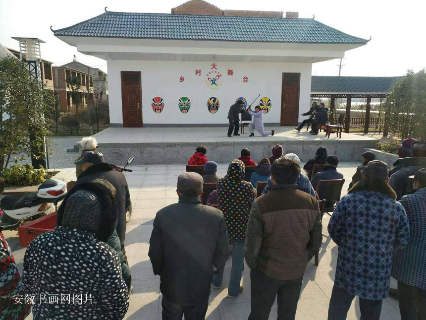 12月12日上午,利辛县阚疃镇张湾社区的乡村大舞台前有近百名群众在兴致勃勃的观看戏曲:《扶贫到我家》,演员均为阚疃镇的民间艺人,内容也是根据一户农家拒绝吃低保励志脱贫的真实故事改编的原创作品,台下的阵阵掌声表达着观众的喜爱。阚疃镇是个千年古镇,历史文化底蕴丰厚,这里的乡村大舞台常年活跃着一些民间文艺团队。到了农闲季节,这些团队采用大鼓、琴书、戏曲、小品等百姓喜闻乐见的形式宣传国学经典、道德模范、法律知识及脱贫攻坚政策,深受百姓欢迎。