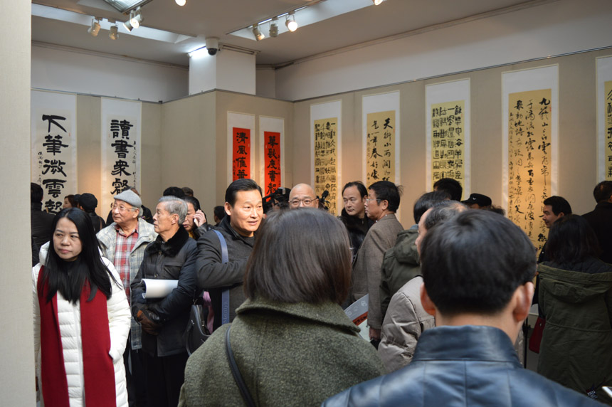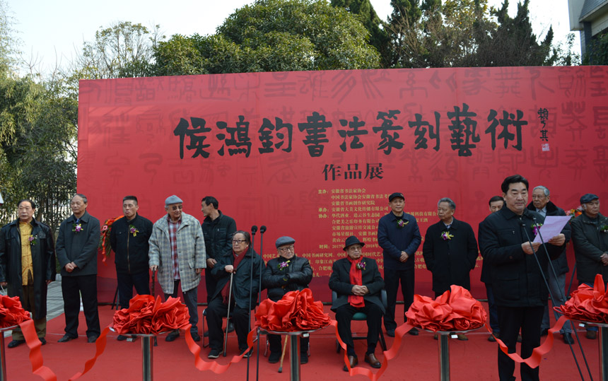 心与笔墨共舞,情与腊梅同香。为纪念毛主席诞辰124周年,12月26日,侯鸿钧书法篆刻艺术展在合肥—久留米友好美术馆隆重开幕。著名书画家刘正宗、郭因、陶天月、张良勋、柳新生、王守志、王林、耿立军等,有关领导及几百名书画爱好者参加了开幕式。此次共展出他近年的精品力作一百多幅,书体全面,风格多样,件件都是书家在书法艺术探索实践中的结晶,表述的是书家最真实的艺术功力和修养性情。