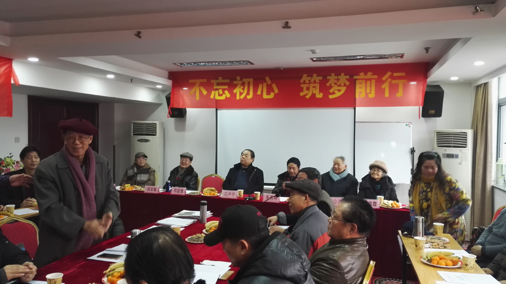 本会执行会长兼秘书长、安徽省文史馆研究员、著名作家、影视编剧兼制片人傅琳在讲话中满怀深情地介绍了本会创办之初的艰难情形,展示了40年前筹建本会的原始会议纪录; 特别是他不看名单能把在场80多人的姓名、专长、人物特点逐个介绍得如此详细,令所有参会者叹服。在他的提议下,全体参会者向40年前本会发起人周建豫(江舟)、王家琰、杨国华三位致敬,掌声经久不息。