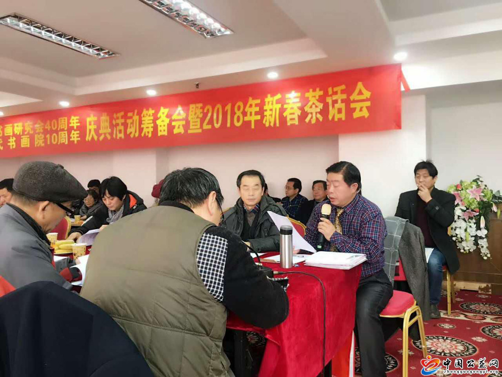 2018年1月21日上午九时,安徽省诗书画研究会40周年、安徽当代书画院10周年庆典筹备会暨2018年新春茶话会,在合肥新亚大酒店隆重举行。来自全省各地的86名新老会员参加了会议。