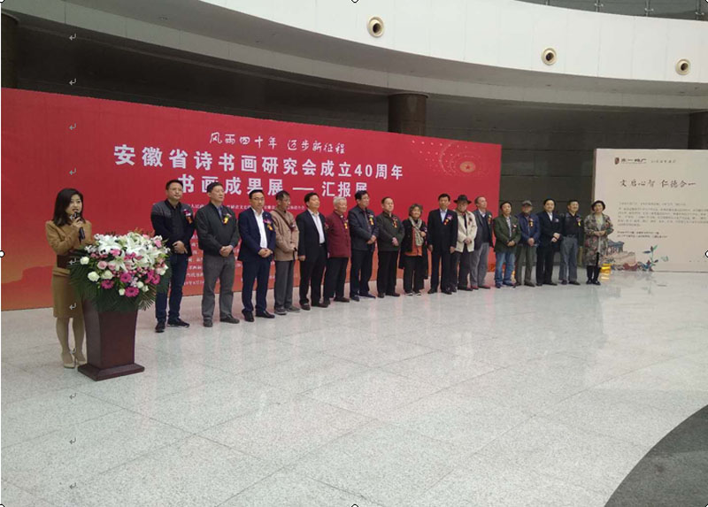 2018年4月24上午,“文一 •塘溪津门杯”——安徽省诗书画研究会成立40周年书画成果汇报展,在合肥市政府阳光大厅隆重开幕。
