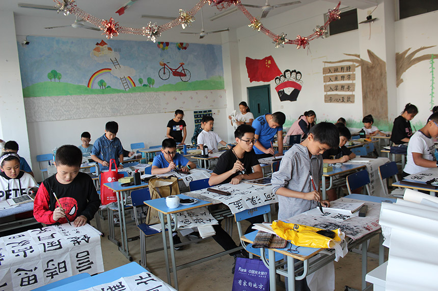 初赛的内容:少儿组写古诗,成人组写四字名言。复赛由临摹和命题创作两部分作品组成。