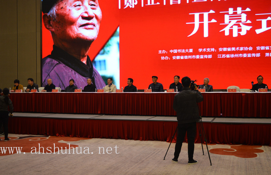 出席开幕式的领导和嘉宾,来自安徽省的有:原安徽省政协主席杨多良、原安徽省人大常委会副主任陈瑞鼎、原安徽省人大常委会副主任朱先发、中国书法大厦艺委会负责人、安徽书法家协会主席李士杰、安徽省美术理论研究会会长王佛生、原安徽省参事室主任周庆、安徽省文史馆副馆长张杰、安徽省美术家协会主席杨国新、安徽省美学学会会长陈祥明、著名美学家、美术史论家郭因、著名画家郭公达、李碧霞、张良勋、丁培生、周彬、王守志、韦君琳、王家琰、萧志远、萧承震、萧承蔼、傅强、黄小舟、朱沈阳、安徽省老年书画研究会会长汪书贵、安徽省诗书画研究会会长余家林、合肥市老年书画研究会会长王琳等。