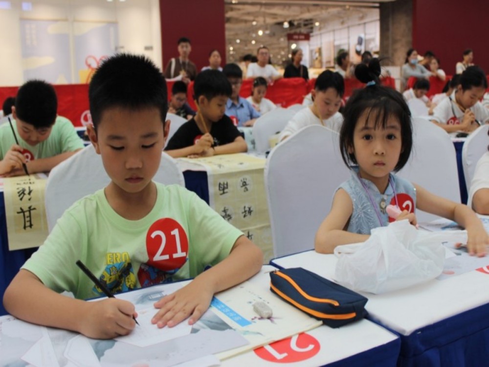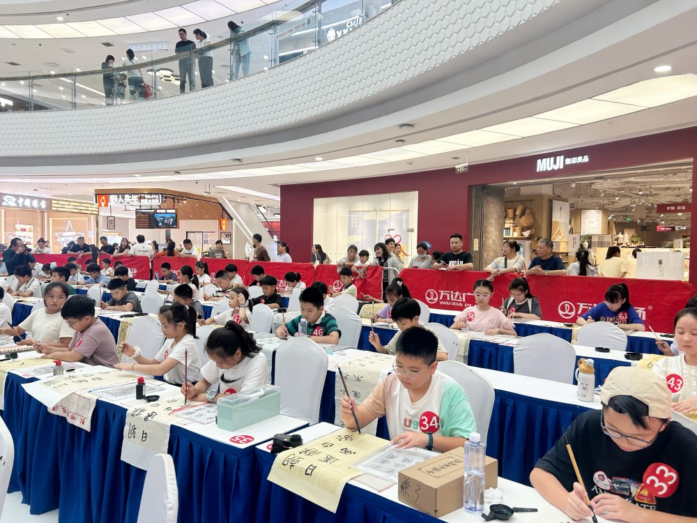 2025年10月8日,刚过完传统中秋佳节,我们在包河万达迎来了一场传统文化艺术活动,这是一场少儿书法现场大赛,旨在传承、弘扬国粹--传统书法艺术。本次活动是由书法培训明师、安徽女书画家王萍牵头组织的,书法大赛于当日下午三点正式开始。 孩子们在书写中感受书法的“精气神”,非常具有传承意义。看着现场近一百位小“书法家”坐姿端正、认真书写,我深深感受到传统文化的种子已经在这专注与热爱中悄然发芽。在墨香氤氲间,让孩子们读懂在汉字里的家国情怀,让传统文化的根脉在笔尖传承生长。受邀参加本次活动并担任评委的有安徽著名书画家孙新立、安徽书画网总编何泽厚、原安徽省书画院办公室主任袁健,安徽女书画家王萍担任主评委。