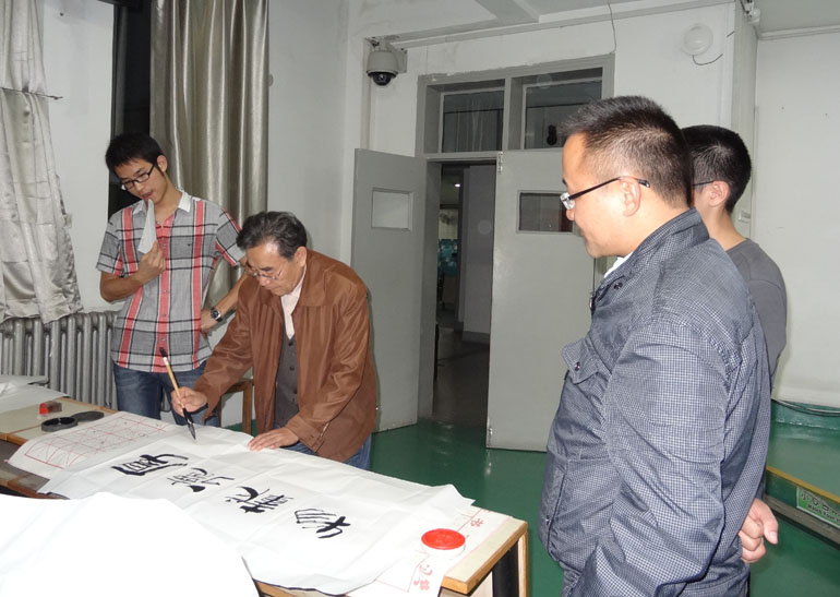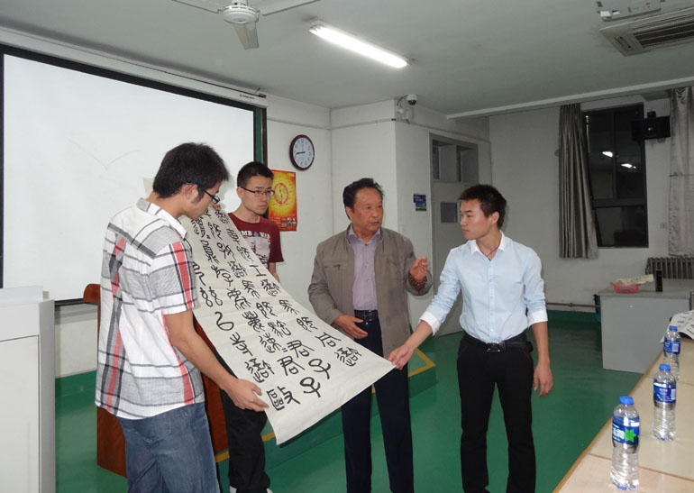 本次活动作为嘉宾出席的书法家有:省直书画协会副会长、知名书法家荣华堂,中医学院教授、知名书法家周孝允,中科大老师、青年书法家岳兴林等。这几位书法名家在讲座结束后,分别给部分学生的作品作了点评,并进行了书写示范,他们边写边讲解,现场解答同学们提出的一些疑惑,教室内气氛非常热烈。