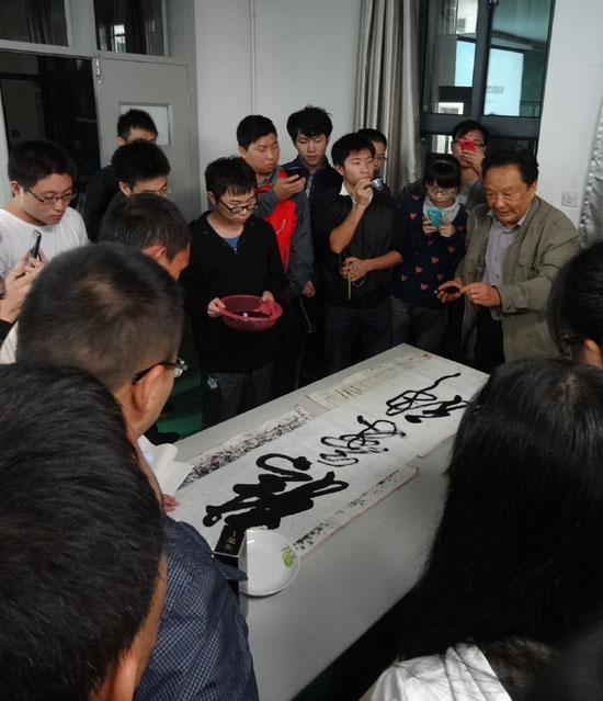 我在中科大第二教学楼2210教室,有幸从头到尾聆听了讲座。笔者注意到一个细节,不仅同学们听得认真,几位参加活动的书法家、作为嘉宾,他们对何先生讲课也不时点头、表示由衷的赞许!